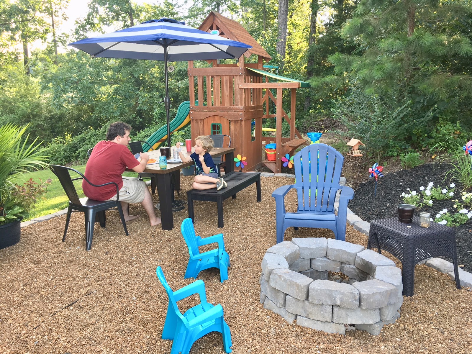 outdoor dining space. But Aaron added in a fire pit which I did not want to